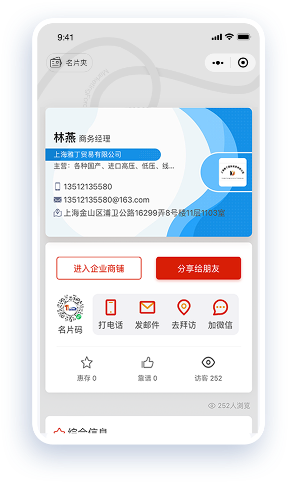 全方位展示个人、公司、商品信息,提升自己和企业的专业形象