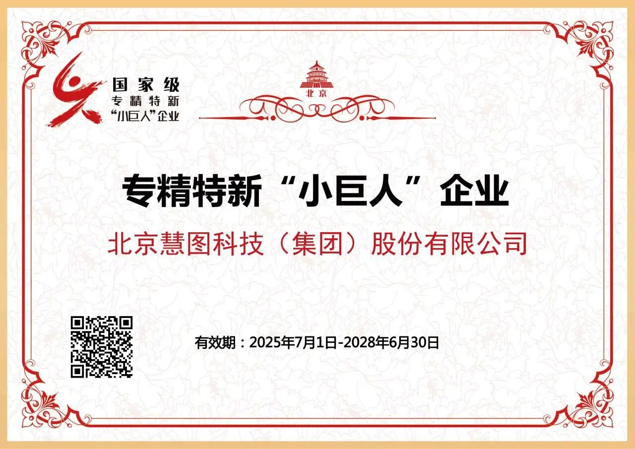 专精特新“小巨人”企业是国家为鼓励中小企业实现专业化、精细化、特色化、新颖化发展而设立的荣誉称号。此次评选,慧图科技凭借其在科技研发、产品创新、市场开拓等方面的突出表现,成功入选,有效期为2025年7月1日至2028年6月30日。