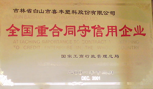 白山市喜丰塑料(集团)股份有限公司是国内较早从事农用薄膜生产的企业之一,主要生产农用薄膜、汽车零部件、化工制品、纸制品等七大系列200多种产品,年产农膜能力超过12万吨,产值超过10亿元,农膜产销量连续多年居全国前列,是亚洲较大的农用薄膜生产企业之一。集团下设白山市喜丰塑业有限公司、沈阳喜丰塑业有限公司、山东喜丰塑业有限公司、白山喜丰塑业三原分公司、浩阳汽车零部件有限公司等10家子公司,10个驻外办事处,销售网络遍布全国,是现任中国塑协副理事长单位、中国塑协农用薄膜专业委员会理事长单位。 白山喜丰集团曾先后荣获全国五一劳动奖状和全国首批重合同、守信用企业、全国文明单位等荣誉称号,喜丰农膜荣获吉林省名牌产品、吉林省质量奖称号。喜丰集团始终以“让喜丰产品为亿万农民带来最大收益”为企业宗旨,坚持“一切服从质量、一心为了用户”的质量方针,在全国农膜行业率先通过质量、环境、职业健康安全三体系认证,喜丰农膜已成为广大农民心中的知名品牌。