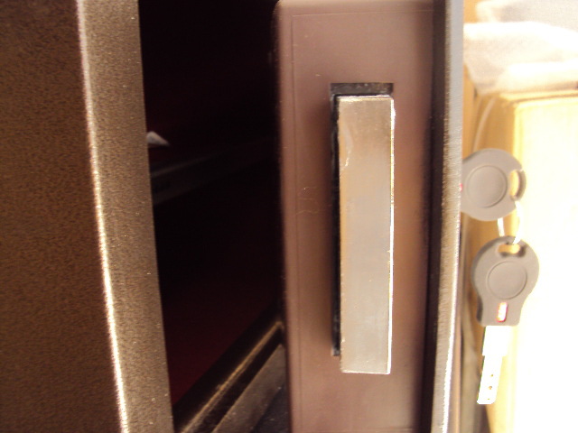电子保险箱的应急开启方法:当输入密码不正确时将右边的钥匙打开,插入钥匙转动钥匙此时与主钥匙同时打开。