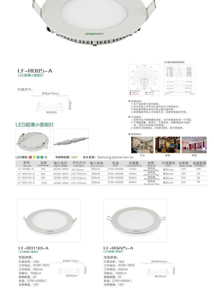 1.本系列面板灯有LF-RO85-A、LF-RO120-A、LF-RO145-A、LF-RO170-A、LF-RO190-A