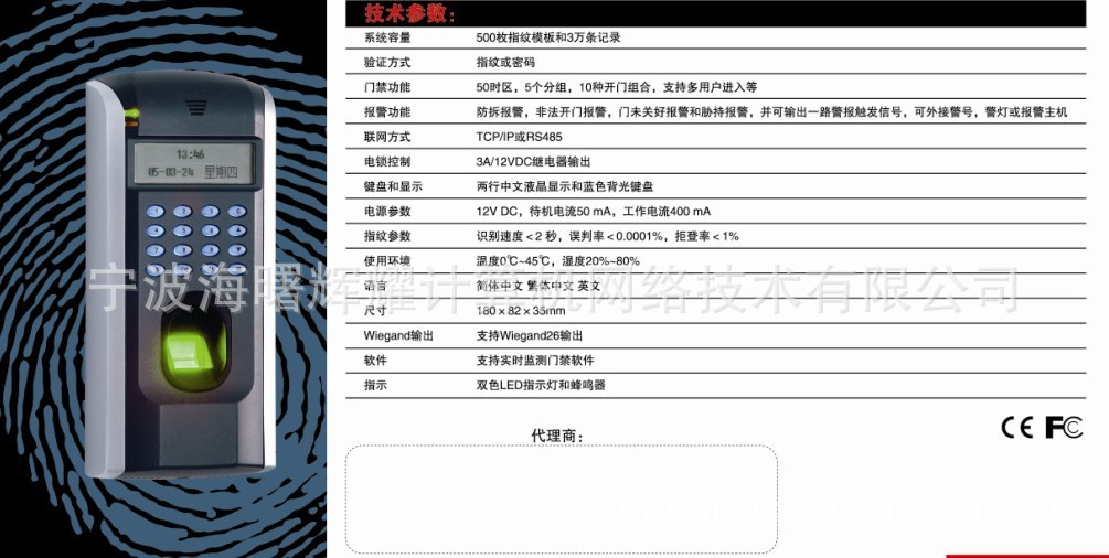 指纹模板容量 | 500枚 |