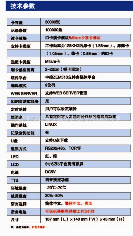 · 采用了中控科技自主知识产权的ZK6001并行高速芯片的ZEM510平台,可支持多媒体开发、系统扩展性强