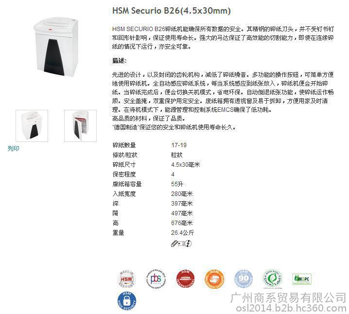 德国进口HSM隐密士碎纸机 Securio B26外形美觀,實用超值,办公碎纸机!