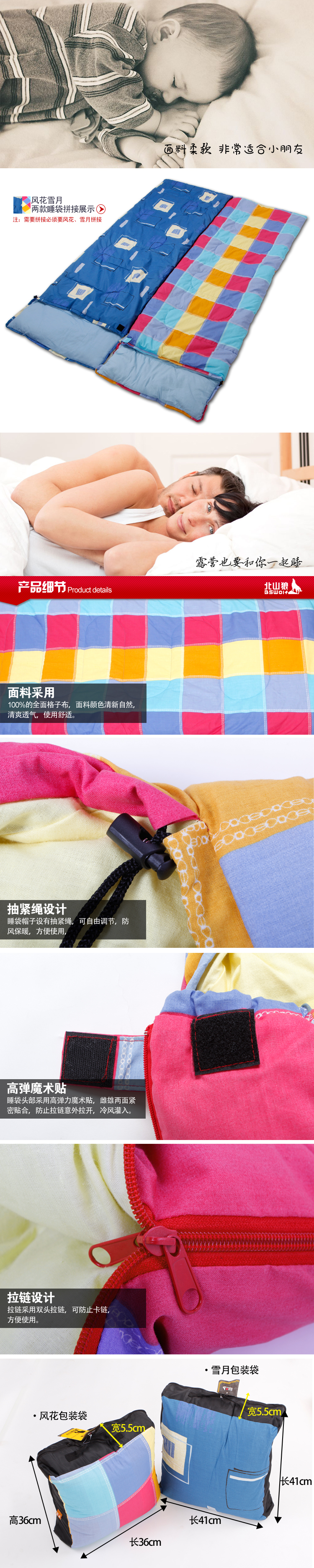 北山狼户外全棉保暖睡袋 成人睡袋 野营午休睡袋 风花SL026
