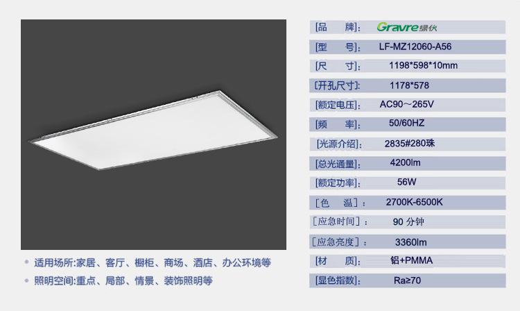 寿命:50000(H)尺寸:1198*598*10(mm)