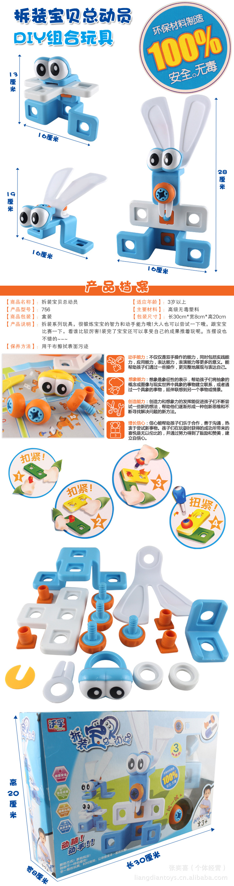 【宝贝描述】出口外销的拆装动物,可变多种动物造型,充分发挥宝宝的创造力想象力,大宝宝可以独立游戏,培养宝宝的独立自主,以及创新能力动手能力;