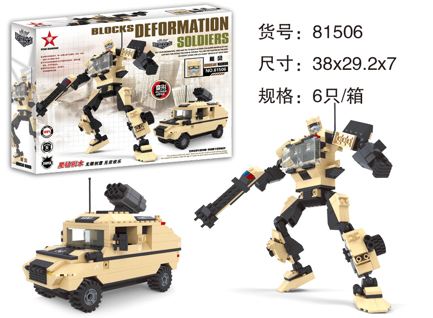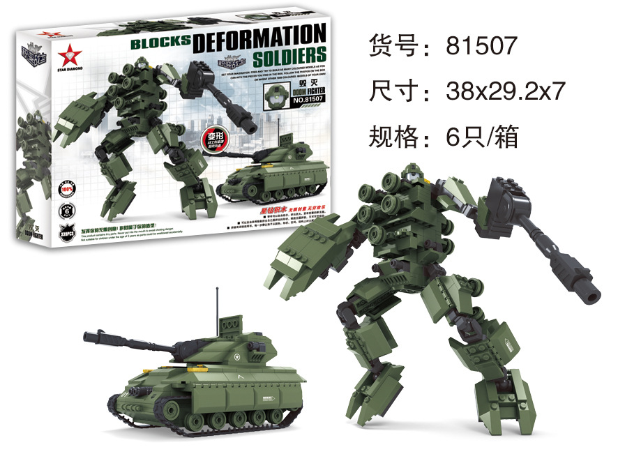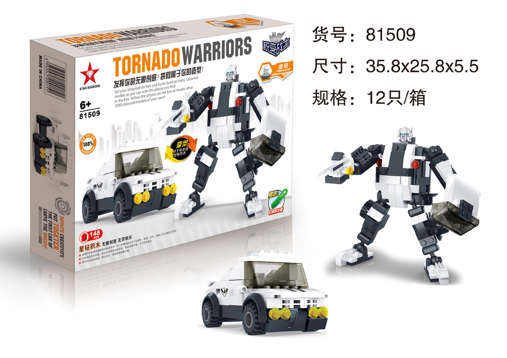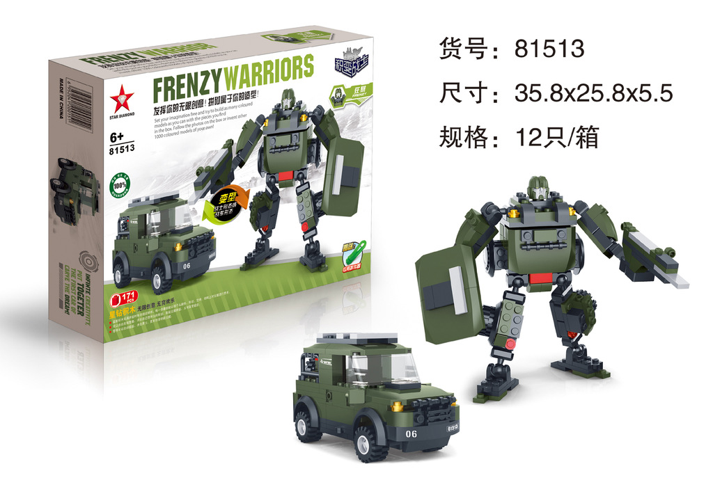 开盒后可以拼为车或者战士形态(另一形态需拆开重新拼装),任意2个可以进行合体,5款可以进行大合体。【积木数量】148片。【商品材质】ABS塑料