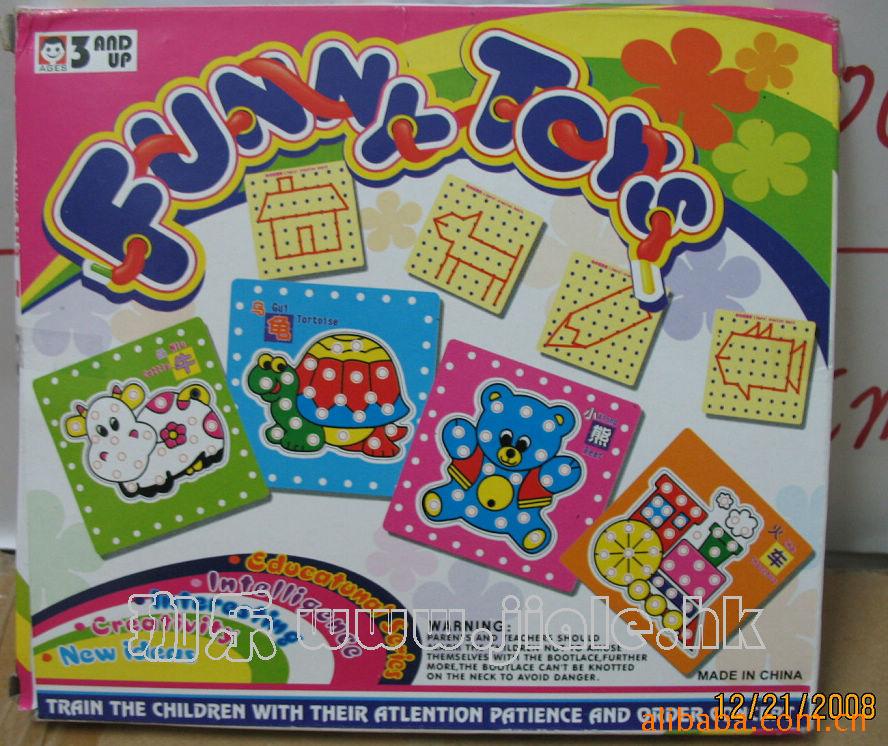 批发供应卡通动物穿线玩具 每盒5张卡通板 3.5元