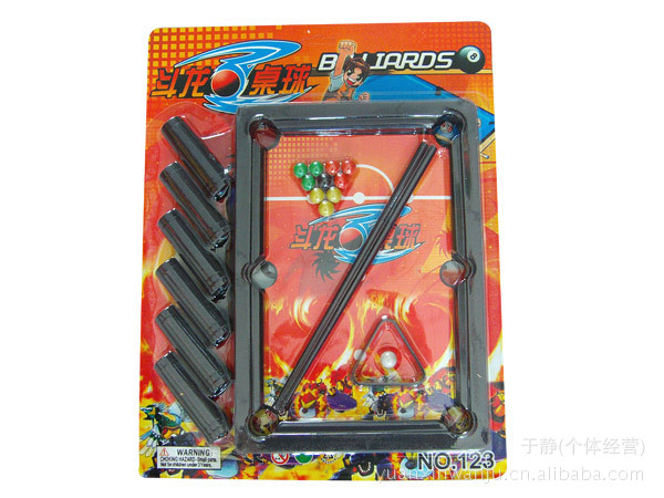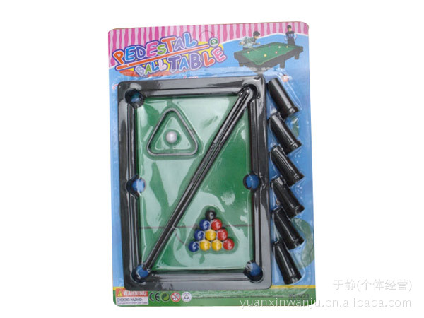 宝贝描述:适合3岁以上的宝宝,是一款新颖的玩具桌球,可以用于家中娱乐,从小培训孩子的动手能力和运动能力。一个小小的台球桌,您可以和宝宝二人对攻,既锻炼了宝宝的协调性、灵活性,又加强了宝宝的竞争意识。这款桌球台可以说是麻雀虽小,五脏俱全,该有的它都有了,只要一个小桌子把它架起来就可以玩了。