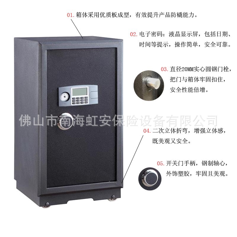 开启方法:采用主防盗锁配合3-8位电子密码的双保险开启方式,几乎杜绝密码排列破解和防暴破坏的可能性(3次输入密码错误系统将自动锁死20秒),非常成熟的电子密码系统保证了产品的耐用性。
