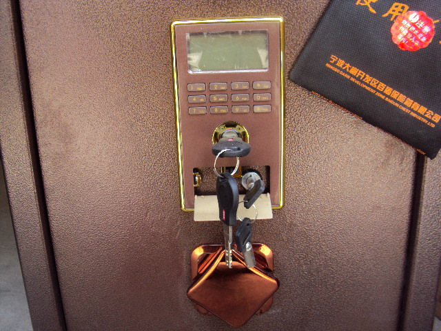 电子保险箱的应急开启方法:当输入密码不正确时将右边的钥匙打开,插入钥匙转动钥匙此时与主钥匙同时打开。