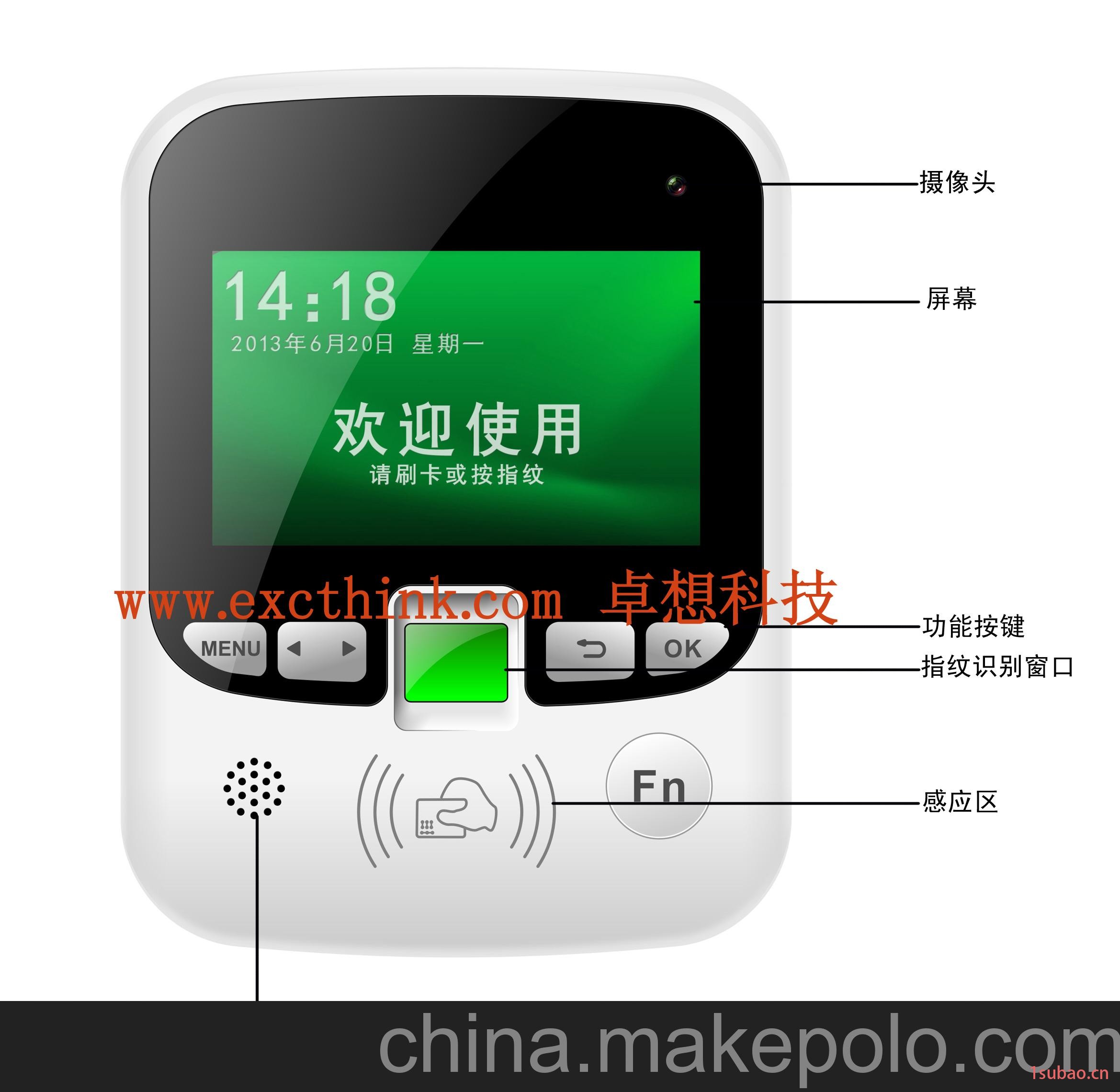 就拿卓想A360无线WiFi指纹考勤机举例,采用MT8312双核Cartex-A9芯片 主频1GHZ方案,兼容性能好,性价比高,散热低,满足日常工作需要。实现更快、更稳定的使用体验,从根本上让企业考勤管理工作变得简单而轻松,内嵌Android4.1操作系统,完全满足市面上既有客户的多种需求,都提供完整的SDK开发包和操作使用说明,满足各类型的开发人员。采用朝鲜光学指纹识别算法,可以容纳2000枚指纹,记录容量达到200000条。用户可以设定响铃时长和响铃时间段,可以直接在考勤机中查看到考勤记录,更人性化的是可以具体定时定人发送对公对私的短消息,可谓增色了不少。