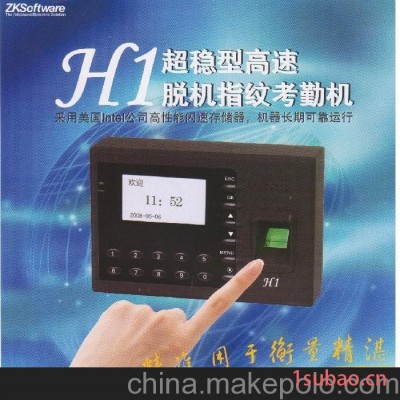 H1为超稳型高速脱机指纹考勤机,采用ZK6001,保障长期可靠运行。可储存1500枚指纹,50000条记录,无需实时连接计算机,是专门针对需要远距离脱机使用的企事业单位进行指纹考勤而设计的,同时,它还适用于各种只需要准确身份识别的各种场合。指纹考勤机通过RS232或RS485方式与计算机通讯,可多台联网使用,适合100人以内的企业考勤.性价比最高的指纹考勤机