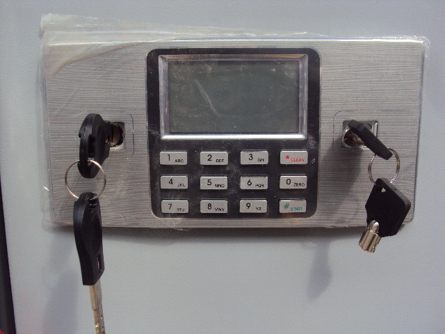4.使用安全:使用微电机驱动,配备电脑钥匙的机械应急锁(隐蔽),数码管或液晶显示(可选),可连接电脑读取开箱记录(选装),后备外接电源插口,预防电池完全没电不足开启箱门而应急使用。