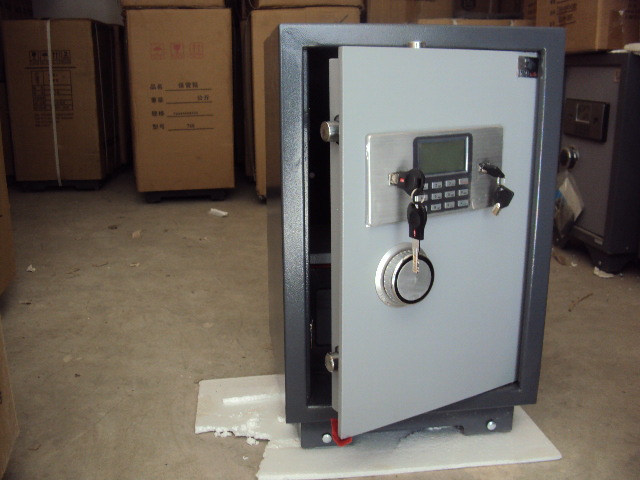 特点:1柜门采用四面叉关用铁棍劲门面不得开启达到国家标准GB10409-2001中A级标准要求。2柜体采用高厚度钢板采用冷轧板工艺一次成型具有焊点少,外表光滑的特性。3选用优质冷轧钢板具有高效的隔热夹层,同时具备抵御各种钻割工具破坏的性能。4一流选装起保险分体式密码锁防钻弹了门锁,门与箱体之间没有独特合理的全方位插销机构。5配有先进的防敲击倾斜内部报警设置。