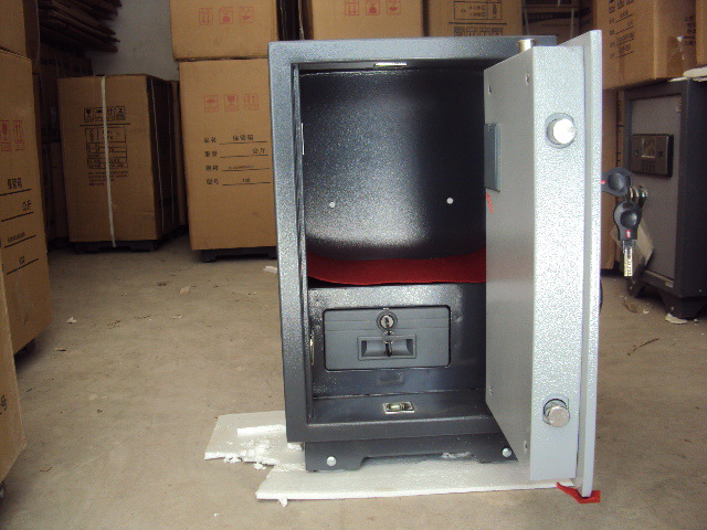 特点:1柜门采用四面叉关用铁棍劲门面不得开启达到国家标准GB10409-2001中A级标准要求。2柜体采用高厚度钢板采用冷轧板工艺一次成型具有焊点少,外表光滑的特性。3选用优质冷轧钢板具有高效的隔热夹层,同时具备抵御各种钻割工具破坏的性能。4一流选装起保险分体式密码锁防钻弹了门锁,门与箱体之间没有独特合理的全方位插销机构。5配有先进的防敲击倾斜内部报警设置。