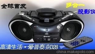 技术参数 产品型号 MobileCinema D28 投影技术 矽基液晶LCoS显示技术 分辨率 640 x 480 像素 (VGA) 亮度 高20 流明 灯泡规格 LED灯 灯泡寿命 10,000小时 投影尺寸 (对角线) 5 ~ 100吋 (约12.7 ~ 254公分) 投影距离 20 ~ 412 公分 长宽比例 4:03 镜头 手动变焦 投影来源 DVD/AV-IN/SD / MMC /U盘 档案格式 照片: JPEG 影片: MPEG-4 (AVI/XVID/MPEG-1,MPEG-2) 音乐: MP3 DVD DVD/CD-R/CD-RW,DVD-R/DVD+R/RW 扬声器 立体声 输入 Audio In 3.5mm,Mic In 3.5mm 输出 Phones 3.5mm,Composit (RCA Video&Audio) 遥控器 有 电源 电源供应器,或电池供电(电池供电不可投影!). 外观尺寸 450 x 250 x 180 mm 附带配件 电源,快速使用手册,遥控器,AV连接线1对1, AV连接线1对3,DVD光盘(电子说明书和Arcsoft Media Converter视频转换软件) | |||||||||||||||||||||||||||||||||||||||||||||||||