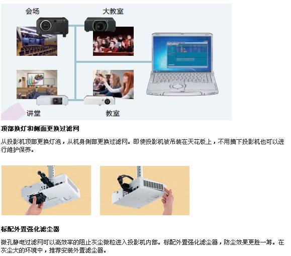 - 灯泡更换周期及空气滤网更换周期可达4,000小时*1*2。