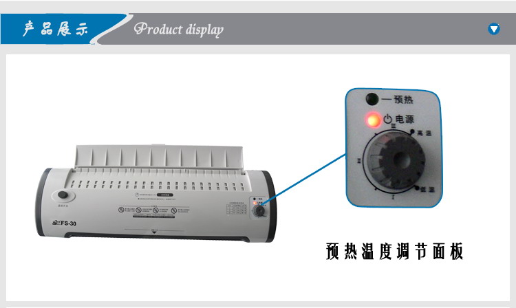◆ 设有温度调节旋钮、即可冷裱,也可加热塑封,多种功能选择;