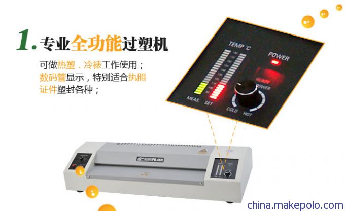 专业全功能过塑机,可做热塑、冷裱工作使用;数码管显示,特别适合执照证件塑封各种;