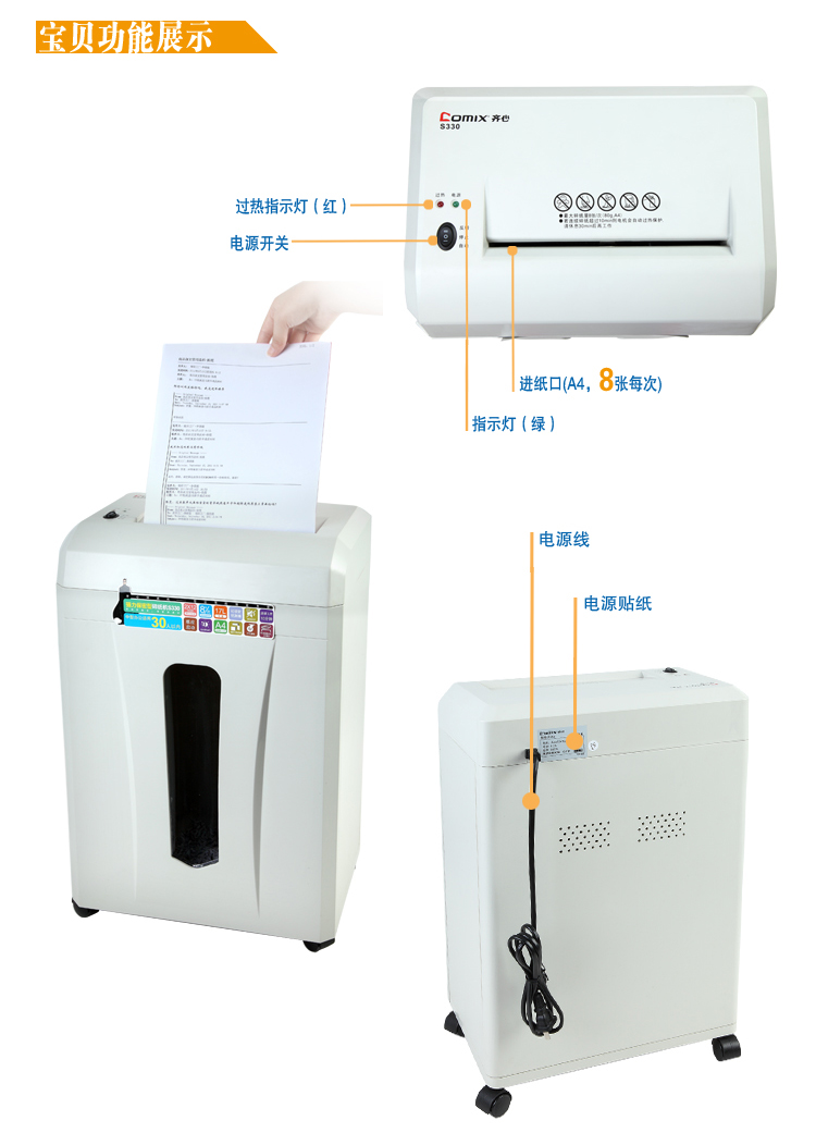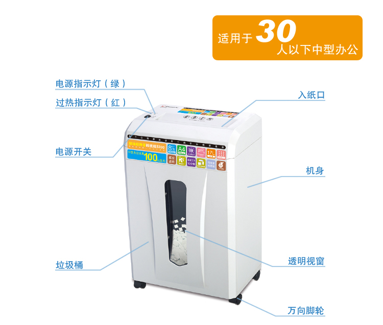 - 碎纸能力:8张纸一次(A4,80G)(张/次)