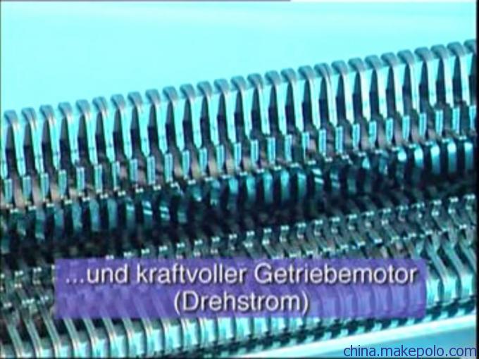 该款设备为工业碎卡设计,进卡方式为横向输送带走卡方式,机内装有多钟电子监控装置,其传动部分齿轮和链条都使用全金属材料,可以完成大批量的碎卡工作,另外此款机器的刀具使用了高科技的合成钢非常耐用。EBA6040S/C型碎卡机的刀具部分是组合式的设计,共由400多片独立刀片组成,能够降低以后可能存在的维修成本(在使用过程中如果刀片出现了问题可独立更换,使维修成本降至最低)。