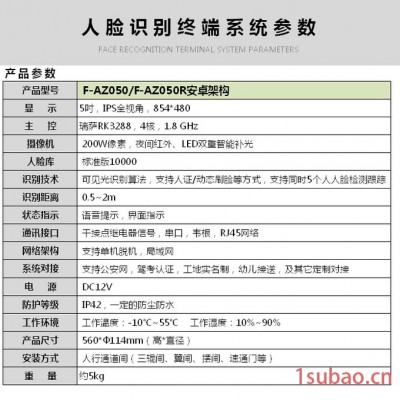 | 型号 | F-AZ050 安卓圆柱/人脸识别门禁机/人脸识别考勤机 |