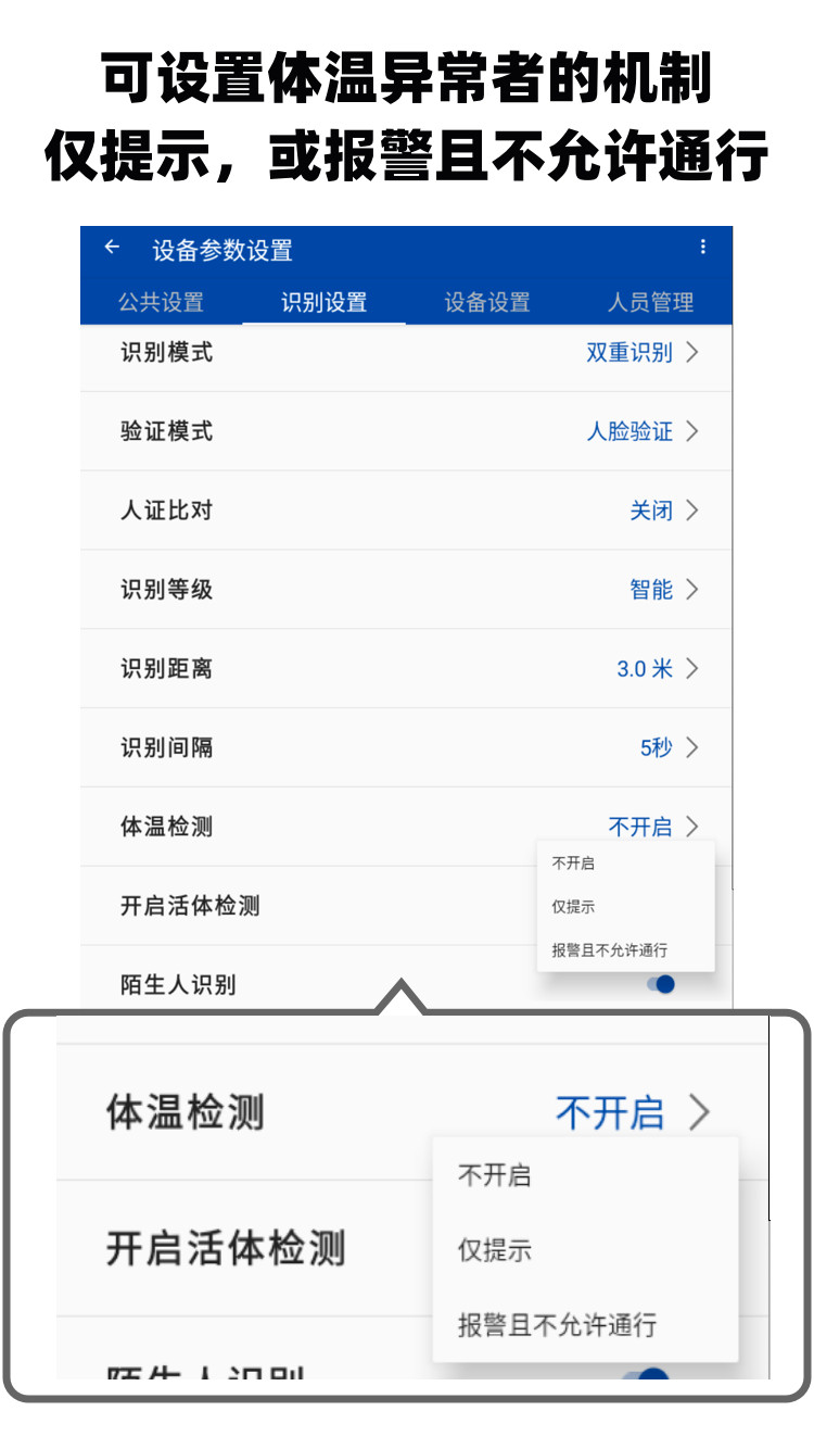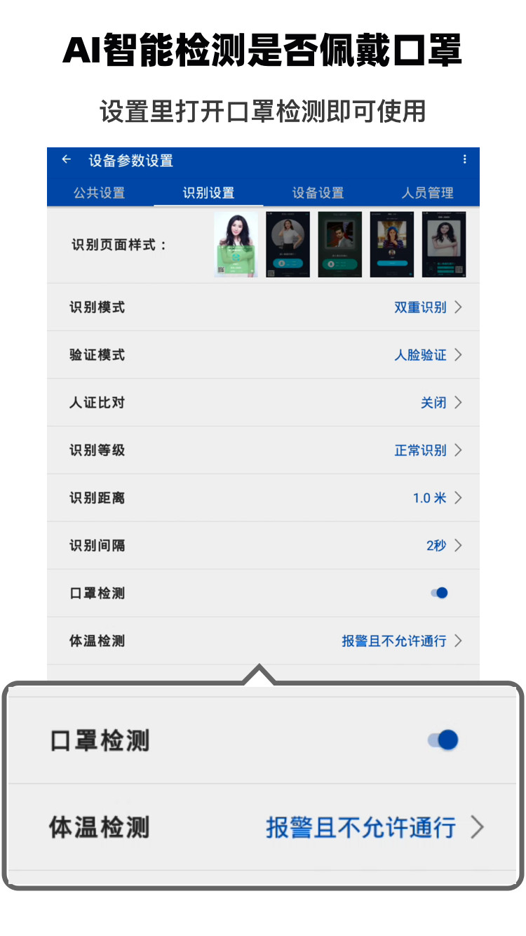 检测距离 识别距离是0.5米~3米,开启测温模式是1米内