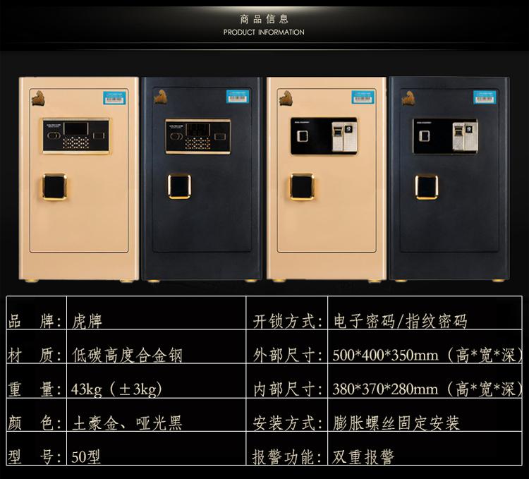 虎牌保险柜家用小型指纹保险箱密码办公50cm高床头迷你保管柜新款