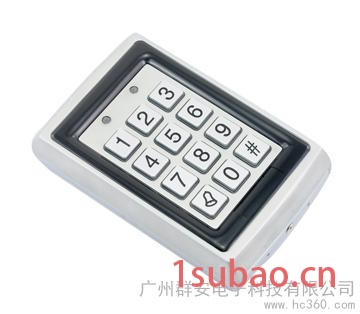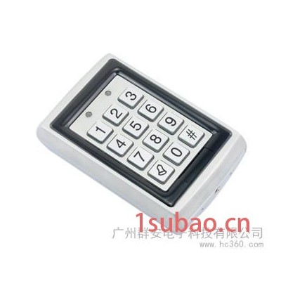 金属单门门禁控制器,支持500张用户感应(EM/ID)卡或密码,内置门铃控制、内置防撬报警,支持普通/安全工作模式内置非接触式**,读卡距离: 65mm内置密码键盘,用于个人四位数字密码输入,内置门铃控制内置防撬报警,机械尺寸:120×76×27mm