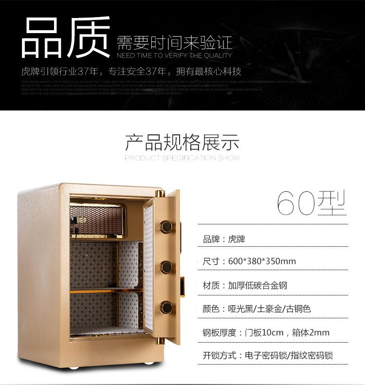 虎牌新品平门保险柜家用保险箱办公高60cm全钢家用保管箱入墙防盗