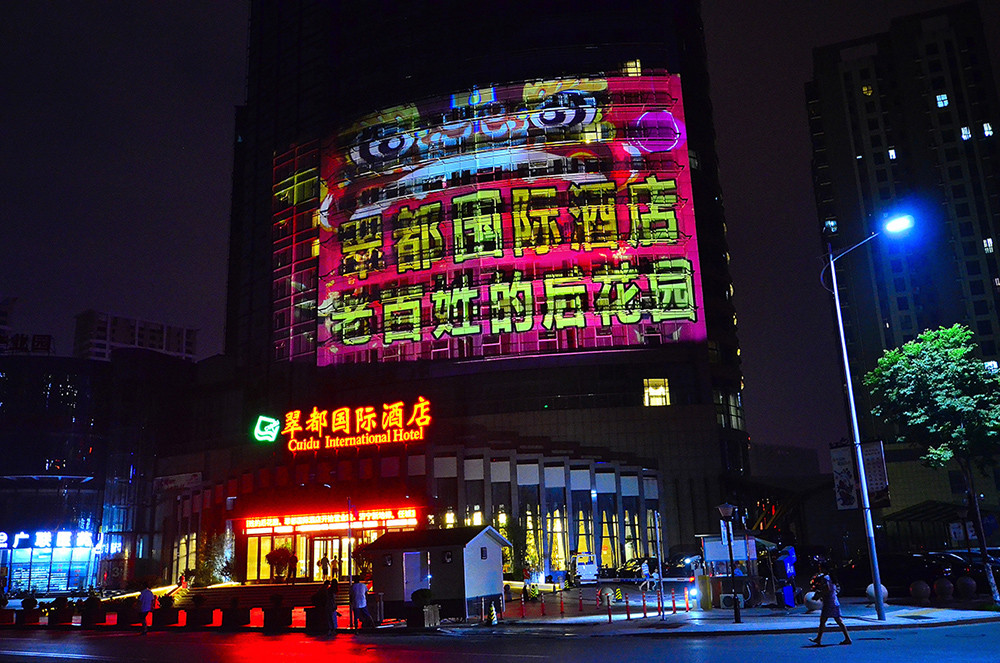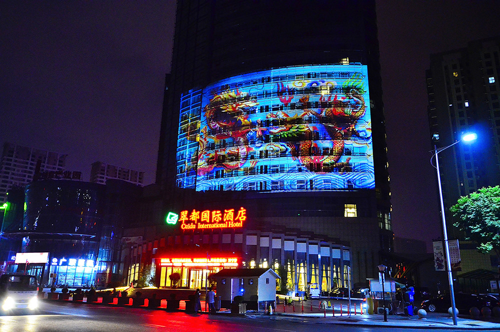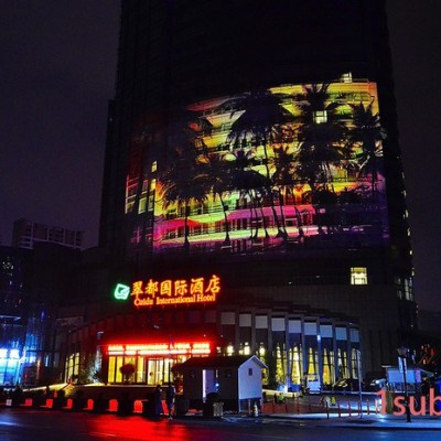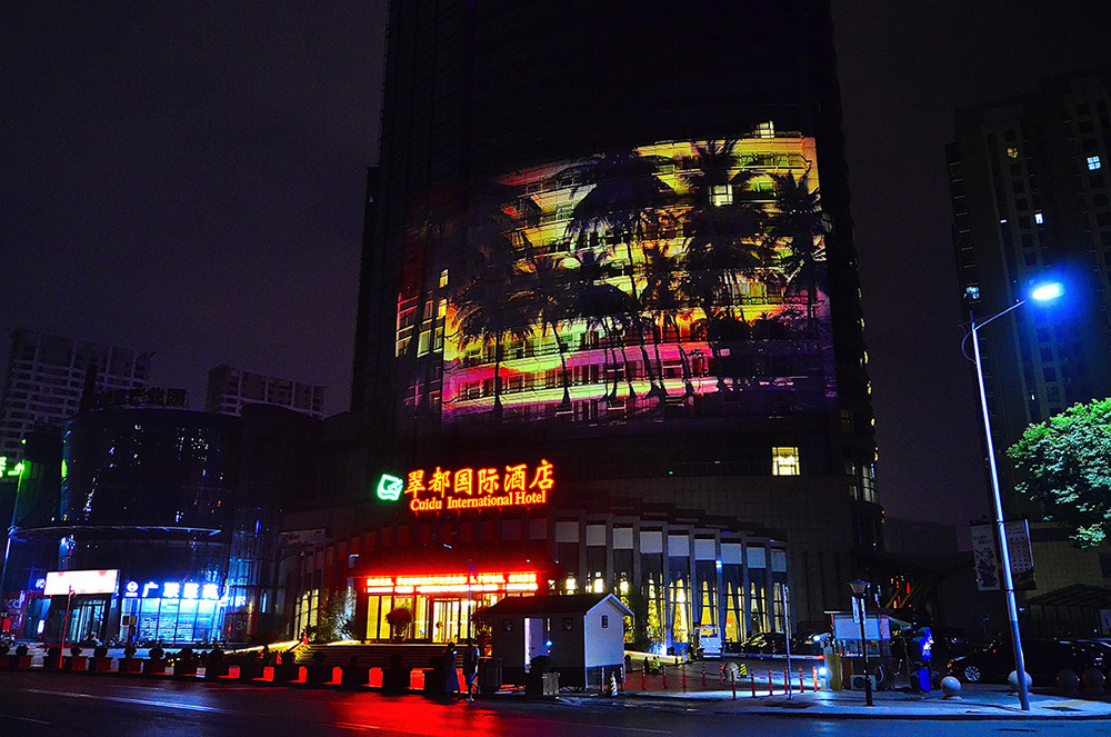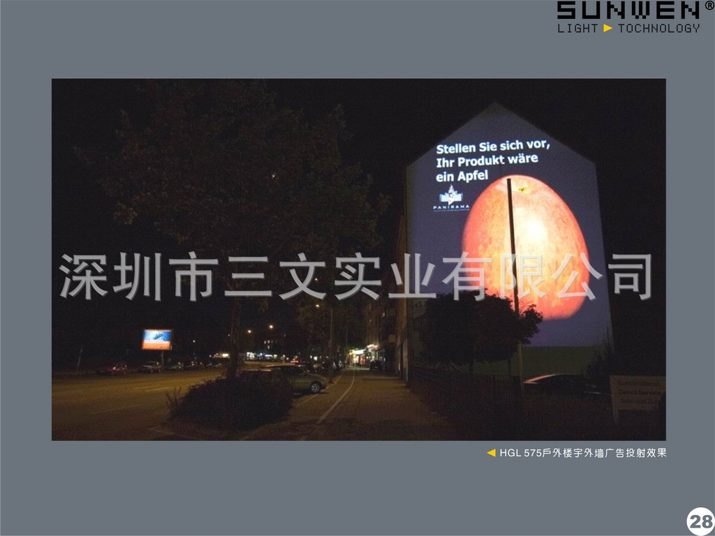 HGL户外防雨投影仪是一种全新的广告媒体,属于投影广告的一种。它是利用一种大功率投影设备,运用光学投影原理,采用高亮度的光源,将底片上的全彩广告内容投射到客户所需要的投影面上,形成极富视觉冲击力的户外或室内广告。