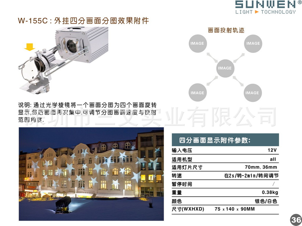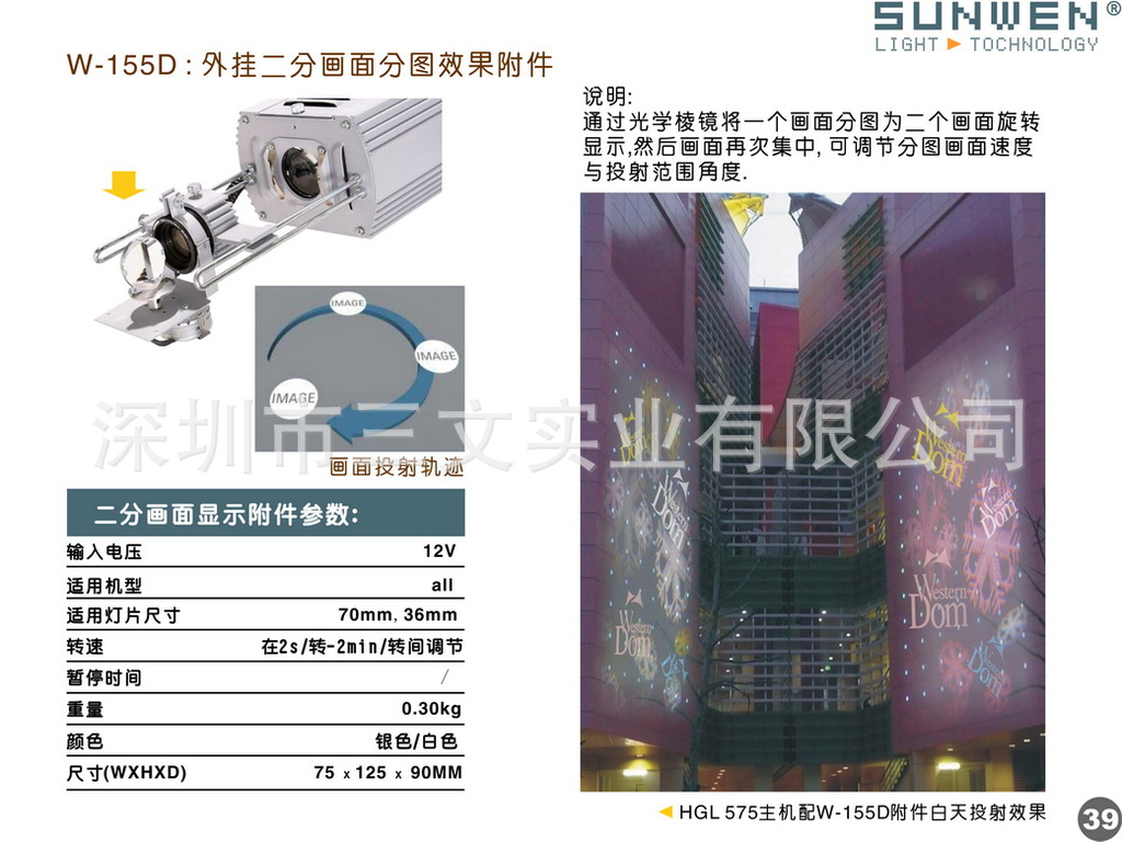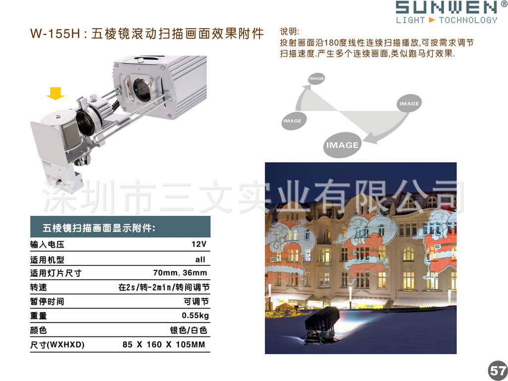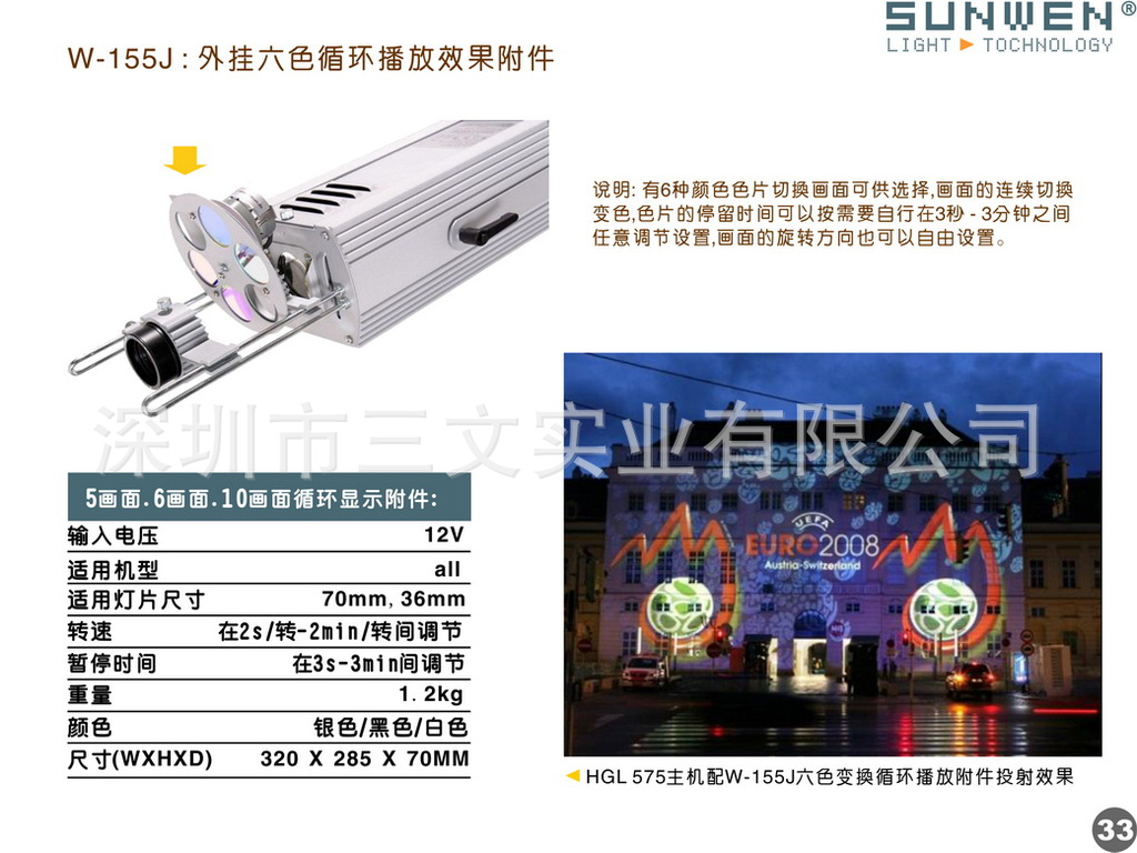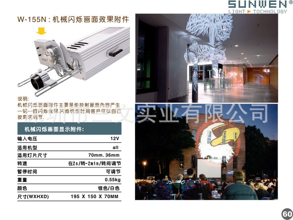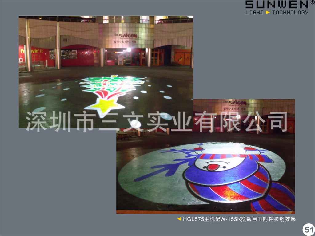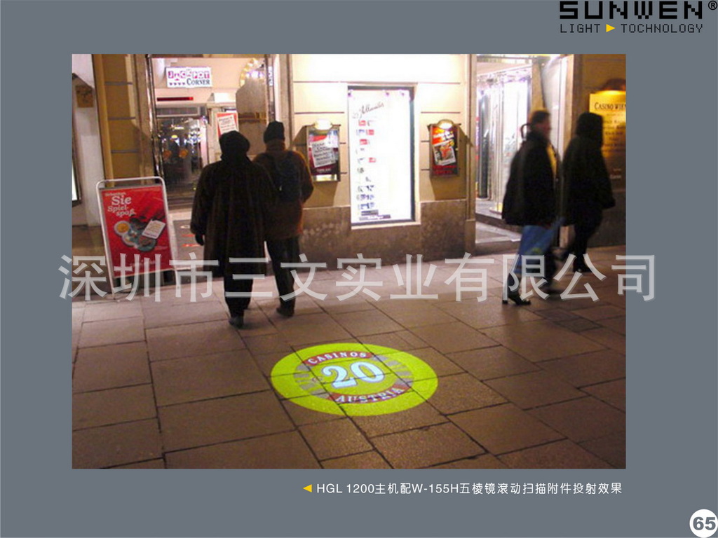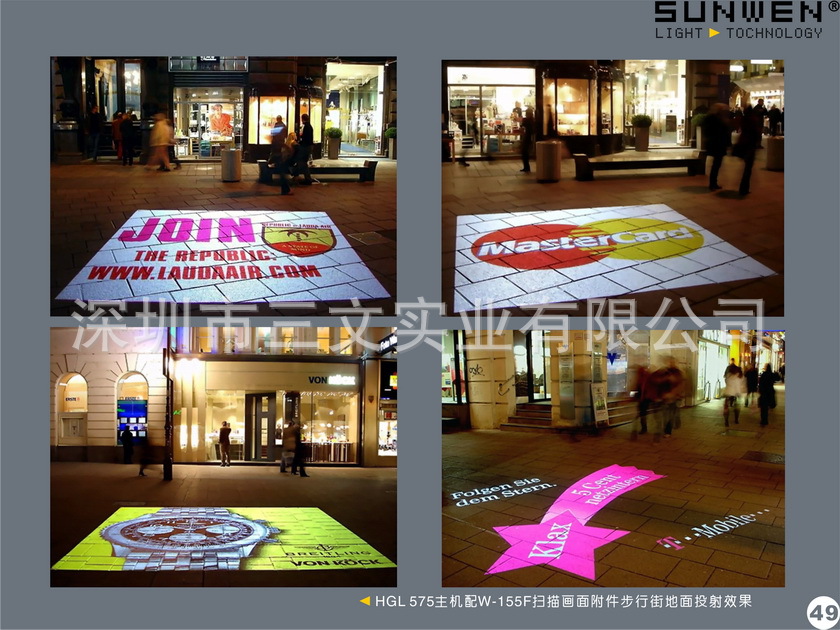 HGL户外防雨投影仪是一种高新科技广告媒体,它克服了国内市场现有广告媒体的不足,目前国内的室外广告媒体类型主要有:灯箱、喷绘、霓虹灯、LED灯具等等,这些产品在使用的过程中都存在着一些不足,像灯箱容易旧,而且更换困难,要消耗根大的人力、财力;喷绘则属于一次性的,清洗不便;霓虹灯的耗电量大,而且容易损坏,不易维修;LED则成本太高。HGL户外防雨投影仪则很好的解决了这此问题,首先W-155-HGL户外防雨动态投影仪体积小、质量轻、耗能低,安装和使用都非常方便。而且这种产品的宣传内容更替比较简单,我们只需要通过更换底片**可以达到这种目的,这样便可以大大的降低我们的广告成本。HGL户外投影仪还有一个显著的特点便是它拥有百佘种特殊的外挂效果附件:通过这此效果附件,可以让我们的产品投射出的画面产生多样的动态的运动效果。例如直线的效果、旋转效果、多画面转换效果,风、火云、点、水绞波浪,风动飘扬的效果等等,可以强烈的吸引顾客的注意力。