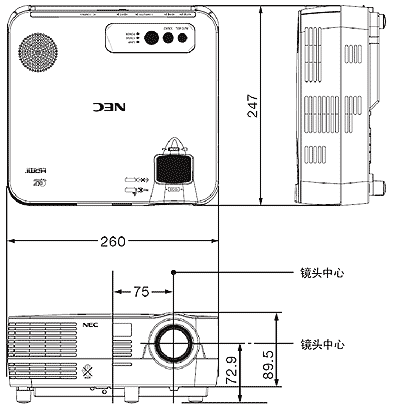 | 尺寸 (W x H x D) | 260mm x 91.5mm x 247㎜ (不包括突出部分) | |