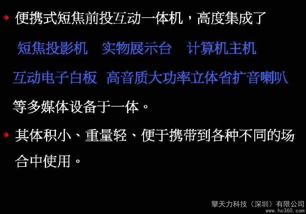 本网页所展示的有关【供应便携式短焦前投互动一体机,投影机_影音电器_擎天力科技(深圳)有限公司】的信息/图片/参数等由简塑制品网的会员【擎天力科技(深圳)有限公司】提供,由简塑制品网会员【擎天力科技(深圳)有限公司】自行对信息/图片/参数等的真实性、准确性和合法性负责,本平台(本网站)仅提供展示服务,请谨慎交易,因交易而产生的法律关系及法律纠纷由您自行协商解决,本平台(本网站)对此不承担任何责任。您在本网页可以浏览【供应便携式短焦前投互动一体机,投影机_影音电器_擎天力科技(深圳)有限公司】有关的信息/图片/价格等及提供【供应便携式短焦前投互动一体机,投影机_影音电器_擎天力科技(深圳)有限公司】的商家公司简介、联系方式等信息。