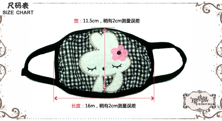 韩国时尚 女 可爱 口罩 特点:可爱卡通小兔,内层棉布 保暖,透气防尘防风 |