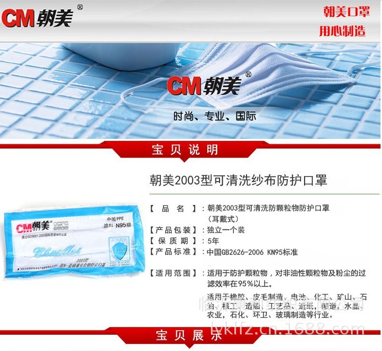 CM朝美 2003型职业防尘口罩、劳保防护口罩 棉纱布口罩 可清洗