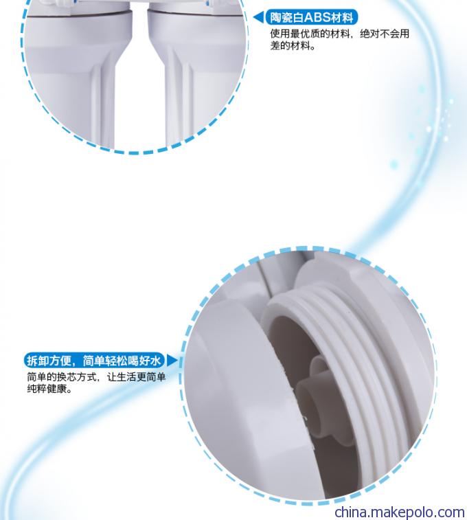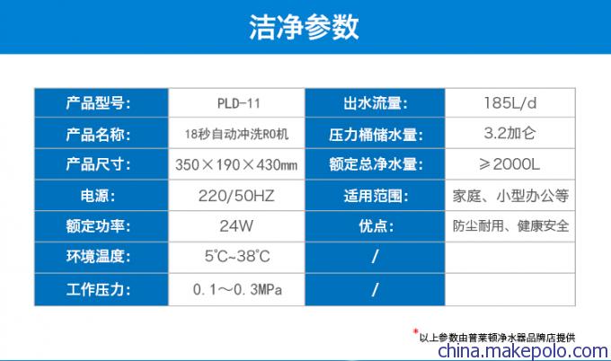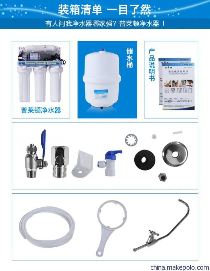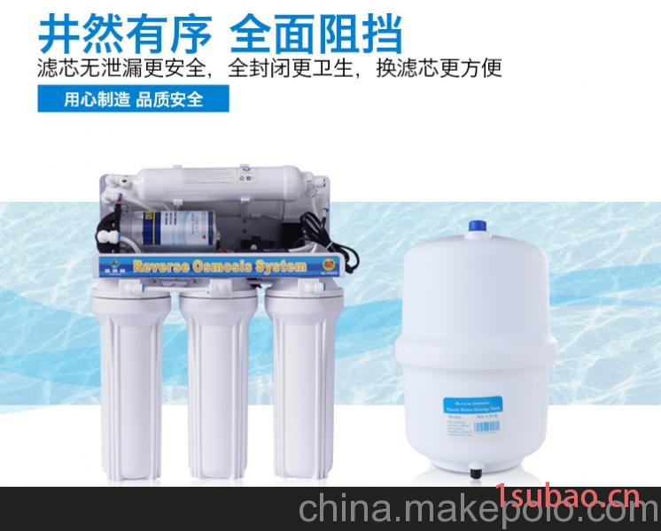 - 滤芯组合:PP棉+颗粒活性炭+烧结活性炭+RO膜+后置活性炭