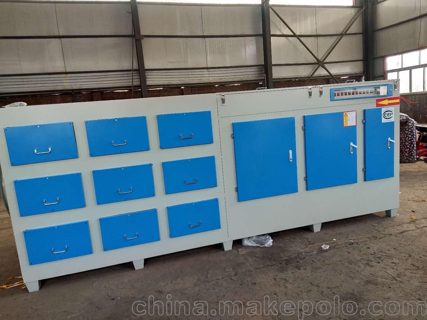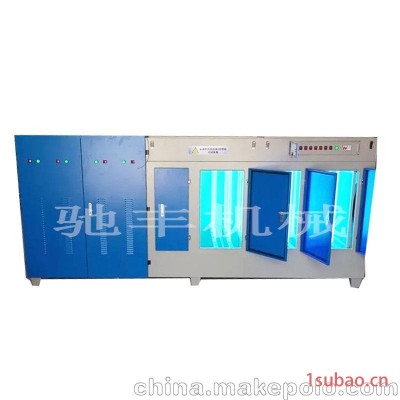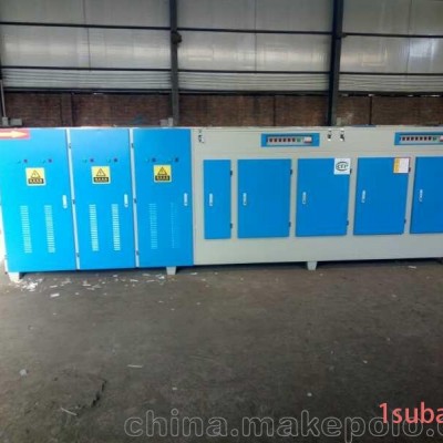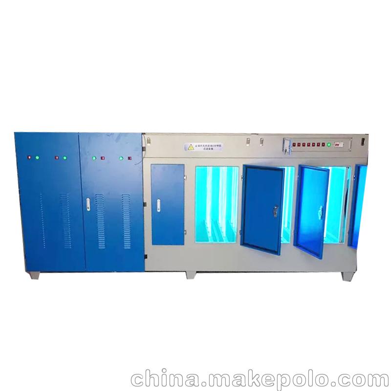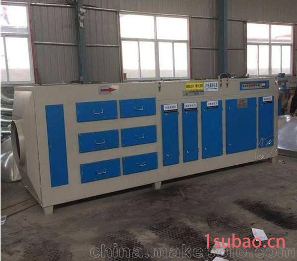 当废气进入等离子光解一体机净化设备内时,先经过等离子体化学反应过程,即电子先从电场获得能量,通过激发或电离将能量转移到分子或原子中去,获得能量的分子或原子被激发,同时有部分分子被电离,从而成为活性基团;之后这些活性基团与分子或原子、活性基团与活性基团之间相互碰撞后生成稳定产物和热。(在外加电场的作用下,介质放电产生的大量携能电子轰击污染物分子,使其电离、解离和激发,然后便引发了一系列复杂的物理、化学反应,使复杂大分子污染物转变为简单小分子物质,或使有毒有害物质转变成 无害或低毒低害的物质,从而使污染物得以降解去除。