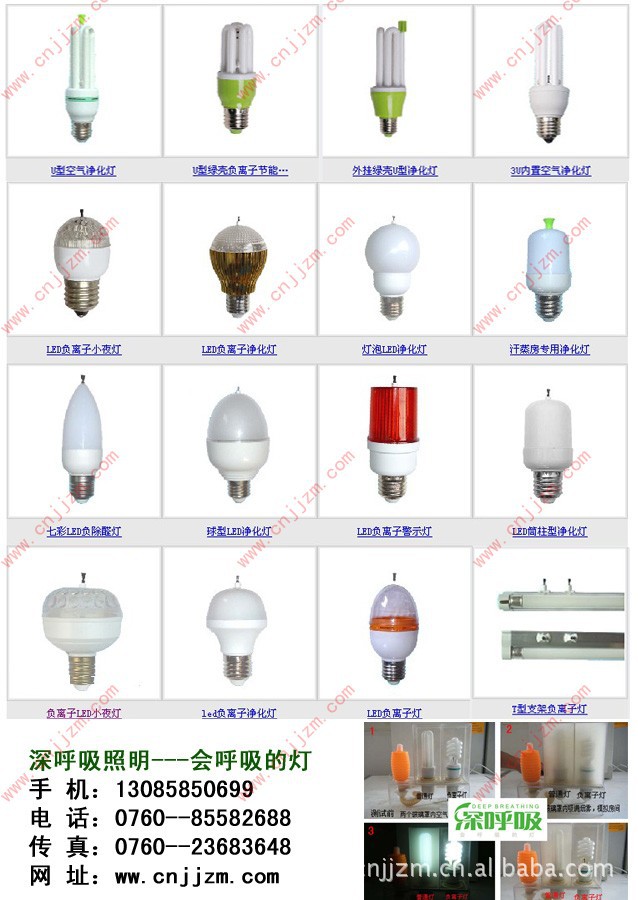 - 深呼吸净化灯(又称空气净化灯、负离子节能灯、除烟灯、除醛灯)净化灯 能吸烟的灯厂家 能吸烟的灯批发 能吸烟的灯供应商 净化节能灯 负离子净化灯 负离子节能灯 空气净化灯厂家是一种带照明的空气净化器和氧吧,能有效地消除室内装修产生的有害气体(苯、甲苯、甲醛、氡、氨等)及日常室内空气中的烟尘、烟雾(有效地预防“二手烟”对人身体的危害)、病毒、细菌、异味、臭味,吸烟产生的尼古丁等,同时可调节人体造血功能,促进肌体的新陈代谢,增强免疫力、消除疲劳、增强食欲。能够改变人类生态环境,让人们在家即可享受一份大自然森林般的新鲜空气!负离子空气净化灯 负离子空气净化灯 空气净化灯 负离子灯 负离子空气净化灯厂家