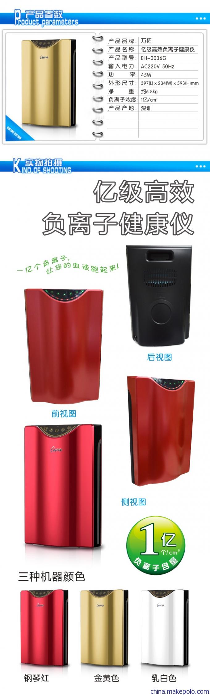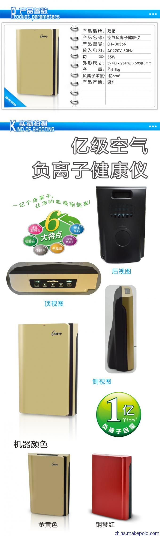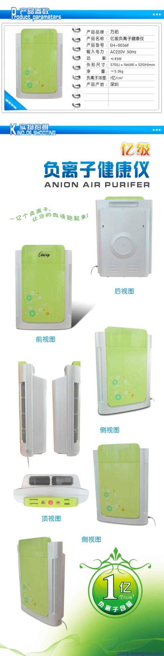 9、采用强力抗菌风扇,负离子覆盖面广、速度快,有效地解决了负离子喷射释放距离近、迅速使室内空气高速流通循环,持续电离和净化。