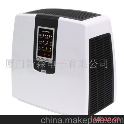 二、产品主要作用:本机可快速消烟、防止二手烟的空气污染;有消除甲醛、苯、氨等化学污染和其它臭味的作用;本机具有空气消毒灭菌、快速过滤空气中飘浮粉尘及其他可吸入性细微颗粒物等净化空气的作用;大量增加空气中负离子浓度,清新空气作用,让人享受到如身处大森林里瀑布边那种清新空气,消除疲劳,有益于健康长寿,有提高人体抗病免疫力和身心健康等多方面保健效果。三、主要技术指标:●负离子浓度:300万个/cm3(距出风口20cm);●臭氧浓度:50mg/h(选择使用);●细菌消亡率:≥95%;●可吸入性微粒净化率:≥99.97%;●甲醛消除率:≥87%;●苯消除率:≥70%;●输入电压:220V(或者110V);●消耗功率:≤42W;●最大风量:230m3/h;●机器噪音:快速净化时,≤46dB;静音工作时,≤20dB.