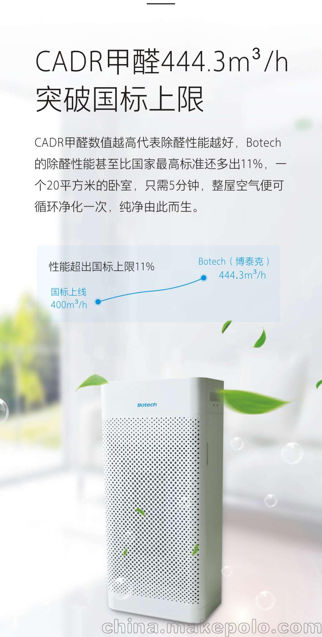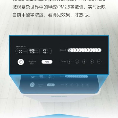 博泰克空气净化系统采用HEPA环保滤网+活性炭吸附+独有分解配方的三重物理净化技术,在相对安静的条件下,保持超强风力,能够高效对空气中的细菌,病菌,颗粒悬浮物以及甲醛等有害物质进行过滤,保障源源不断地输出洁净空气,时刻确保您与家人的身体健康。