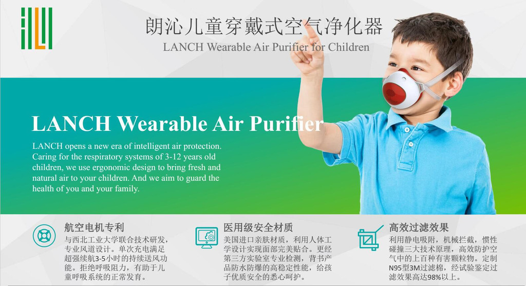 朗沁儿童穿戴式空气净化器运用独立全密封风路设计,高品质3M定制滤棉,依靠静电吸附+机械拦截+惯性碰撞的防护原理,有效呵护孩子的呼吸健康。更有强力风扇与排风回路设计,持续保持面罩内气体的正压循环,满足轻松佩戴的同时,让宝贝们安全自由的呼吸清新空气。