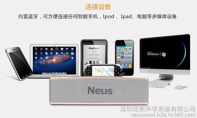 内置蓝牙、AUX可方便连接任何手机、iPod、iPad、电脑等多媒体设备;