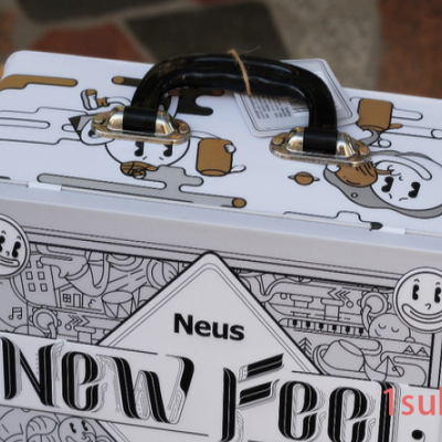封面“NewFeel”字样好像是在告诉它的主人,每次开启都会让人联想到感情日久弥新。盒盖采用精致小锁头来扣紧,是不是暗示内部藏有神秘宝藏?蓝色封条则表明产品主体的配色。包装盒一侧还带有握把,这个体现便携二字的细节部分。