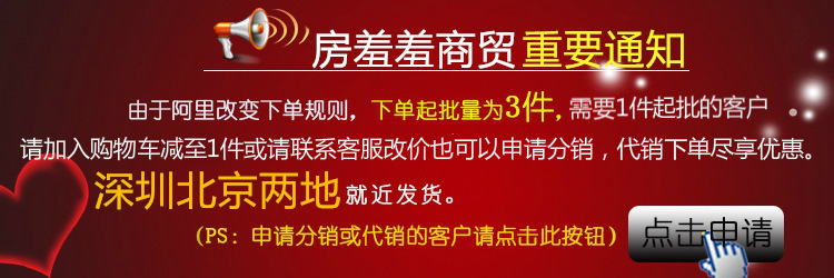 1.本店所有宝贝,都支持一件下单代发!不在线时,也可以直接下单。每天17点前下单当天发货,17点后下单第二天发货。我们诚招代理分销商,可直接申请,自动审核。货源稳定,可长期供货,品**良,本店宝贝全部隐私发货,请放心购买!如有任何疑问,请您即时与我们联系!