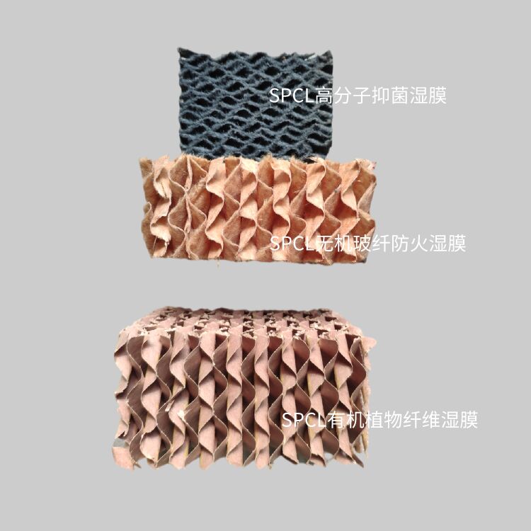 斯普柯林目前生产有各种湿膜材料。这些材料包含有机湿膜植物纤维材质,也有高分子无菌阻燃型无机湿膜材料、含玻纤的湿膜材料。产品配套于可移动湿膜商用加湿器、湿膜柜机加湿器、湿膜直排水加湿器、湿膜循环水加湿器
