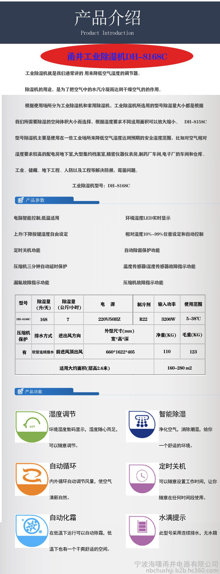 本网页所展示的有关【甬井DH-8168C超声波加湿器 地下室除湿器_加湿器_宁波海曙甬井电器有限公司】的信息/图片/参数等由简塑制品网的会员【宁波海曙甬井电器有限公司】提供,由简塑制品网会员【宁波海曙甬井电器有限公司】自行对信息/图片/参数等的真实性、准确性和合法性负责,本平台(本网站)仅提供展示服务,请谨慎交易,因交易而产生的法律关系及法律纠纷由您自行协商解决,本平台(本网站)对此不承担任何责任。您在本网页可以浏览【甬井DH-8168C超声波加湿器 地下室除湿器_加湿器_宁波海曙甬井电器有限公司】有关的信息/图片/价格等及提供【甬井DH-8168C超声波加湿器 地下室除湿器_加湿器_宁波海曙甬井电器有限公司】的商家公司简介、联系方式等信息。